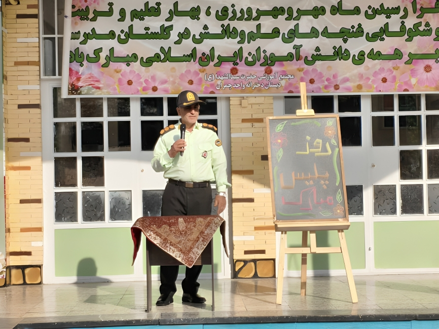 به مناسبت روز نیروی انتظامی، مدرسه میزبان حضور گرم و افتخارآمیز پلیس محترم بود. این مراسم با هدف آشنایی بیشتر دانشآموزان با نقش کلیدی نیروی انتظامی در حفظ نظم، امنیت و آرامش جامعه برگزار شد. در جریان این برنامه، پلیس محترم با سخنرانی آموزنده و صمیمی خود، به معرفی وظایف و مسئولیتهای این نهاد خدمتگزار پرداخت و با بیان تجربیات ارزشمند خود، دانشآموزان را با چالشها و اهمیت فعالیتهای روزمره مأموران انتظامی آشنا کرد.