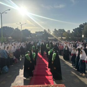 امروز مدرسه‌مان میزبان عطر حضور خادمان مسجد مقدس جمکران بود؛ خادمانی که با لباس خدمت، دل‌های کوچک و پاک دانش‌آموزان را به ضیافت نور و عشق بردند. صدای قدم‌هایشان، زمزمه‌ی دعای فرج را در دل‌ها زنده کرد و نگاه‌هایشان، یادآور مهربانی امامی بود که چشم به راه دعای ماست. فضای مدرسه رنگ انتظار گرفت، و هر گوشه‌اش پر شد از عطر صمیمیت، ایمان و امید. چه افتخاری بالاتر از اینکه در کنار درس و مشق، لحظاتی را با خادمان حضرت سپری کنیم و دل‌هایمان را به آسمان گره بزنیم.